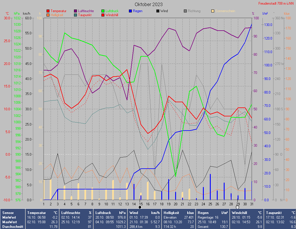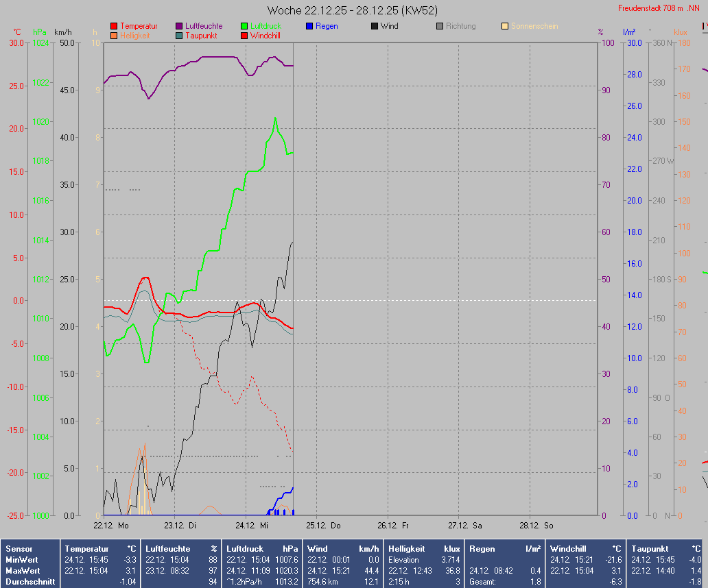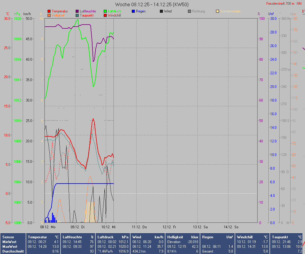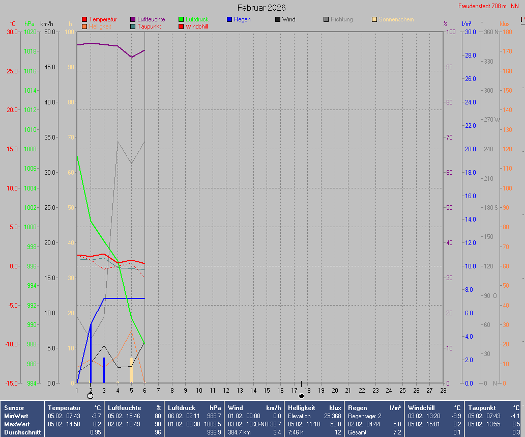 Sonnen- und Mondwerte beziehen sich auf den Standort der Wetterstation