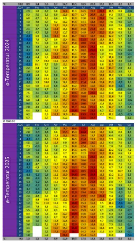 definierten Tage (Heiße Tage, Sommertage, warme und kalte