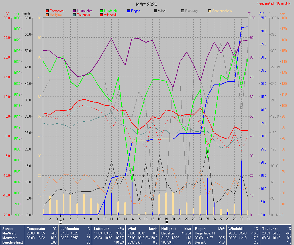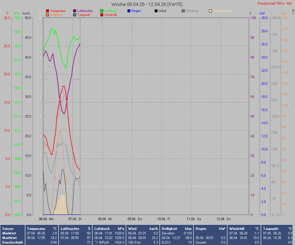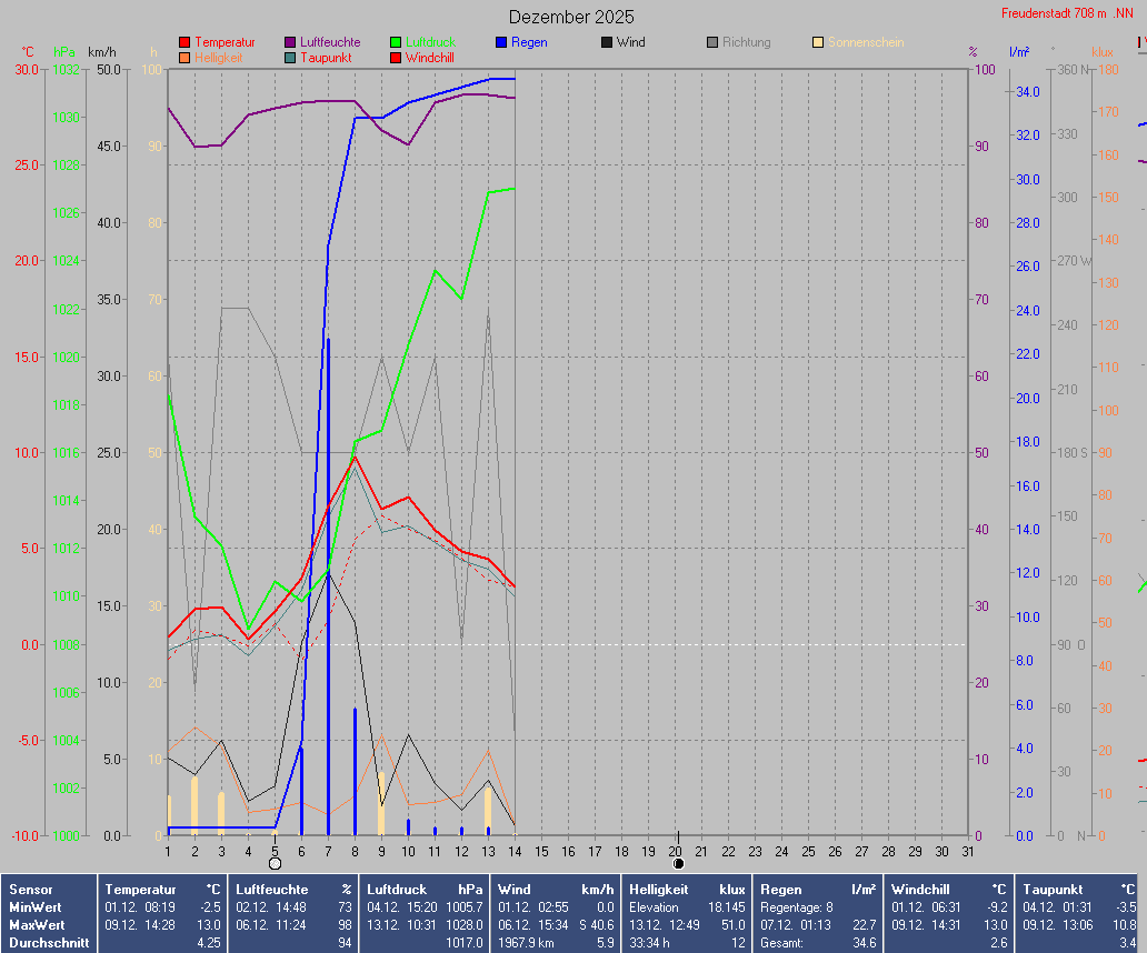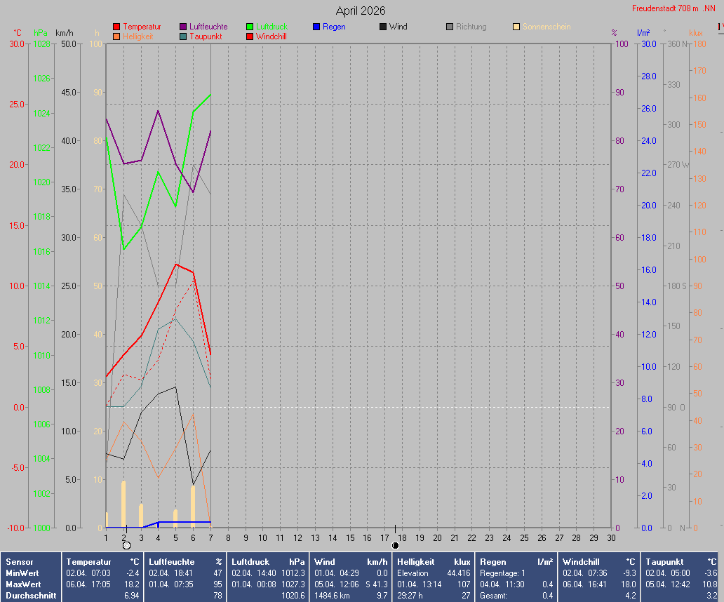 Sonnen- und Mondwerte beziehen sich auf den Standort der Wetterstation